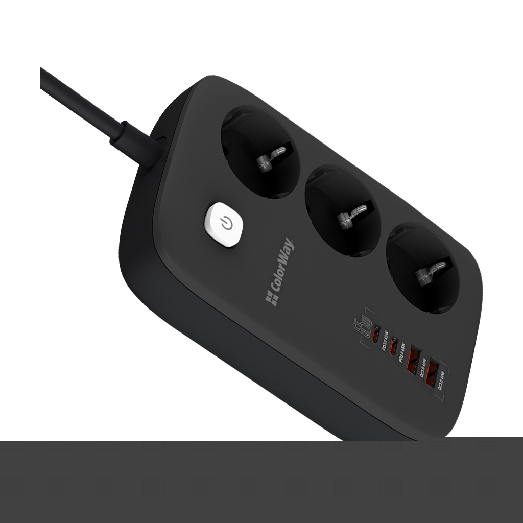 Компактный удлинитель с тремя розетками 220В и с 2 портами USB, поддерживающими технологию быстрой зарядки Quick Charge 3. 0/4.0, и 2 USB-C PD с поддержкой протоколов PD (Power Delivery) 2.0/3.0, 65W PPS; APPLE FAST CHARGE; SAMSUNG 5V-2A/AFC/SFC; QC2.0/3.0/4.0+; HUAWEI FCP/SCP, VOOC, XIAOMI 27W TURBO CHARGING.