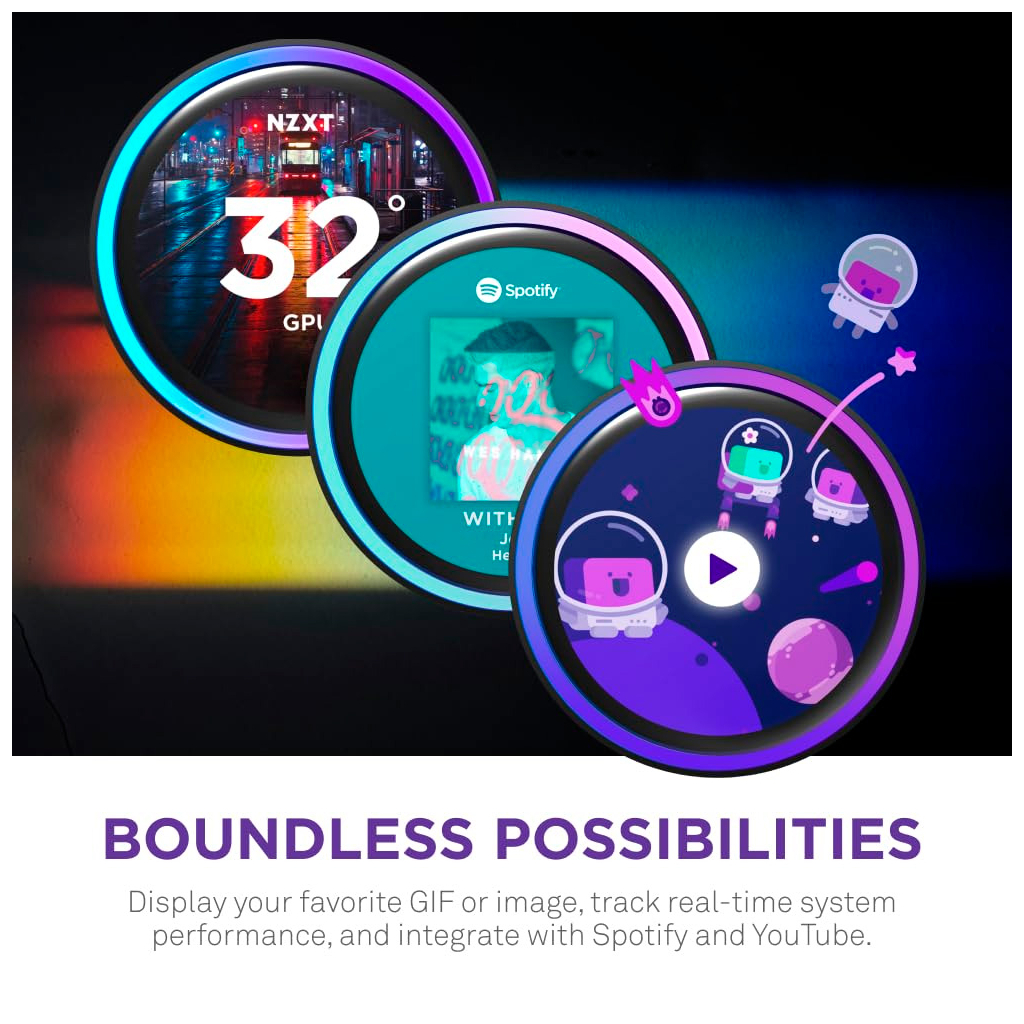 - Демонстрируйте любимые GIF-файлы или изображения, отслеживайте производительность системы в реальном времени и интегрируйте с Spotify, YouTube и т.д.